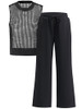 - Features - Women's Two Piece Outfits, hollow-carved design, crew neck, sheer pointelle stitch, sleeveless. This women's sweater set is perfect for daily wear, work, office, business, vacation.