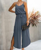 - Women Spaghetti Strap Rompers: This sleeveless jumpsuit is designed with adjustable spaghetti straps, ensuring a comfortable and customizable fit for every body type; What sets this jumpsuit apart is its leg side slits design, adding a flirtatious and confident touch; While the daring backless give it a hint of sexiness, making sure all eyes are on you wherever you go